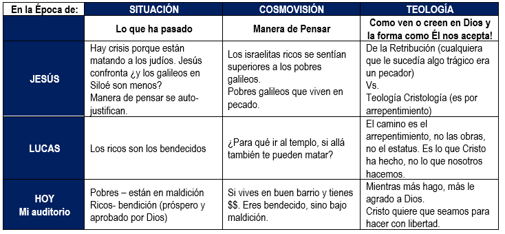- Había persecución de los judíos por parte de Pilato. Estaban bajo un gobierno romano. Muchos judíos pensaban que eran mejores que los galileos. Que si pasa una desgracia era sinónimo de pecado. Jesús explica que a quien camina con él también le puede pasar una tragedia. Por lo que necesito cambiar mi forma de pensar: