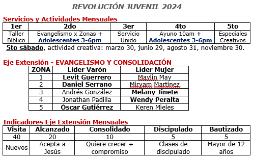 4. Consolidación y Discipulado: Wendy Peralta – Melany Jinete – Oscar Gutiérrez – Adriana Pérez.
